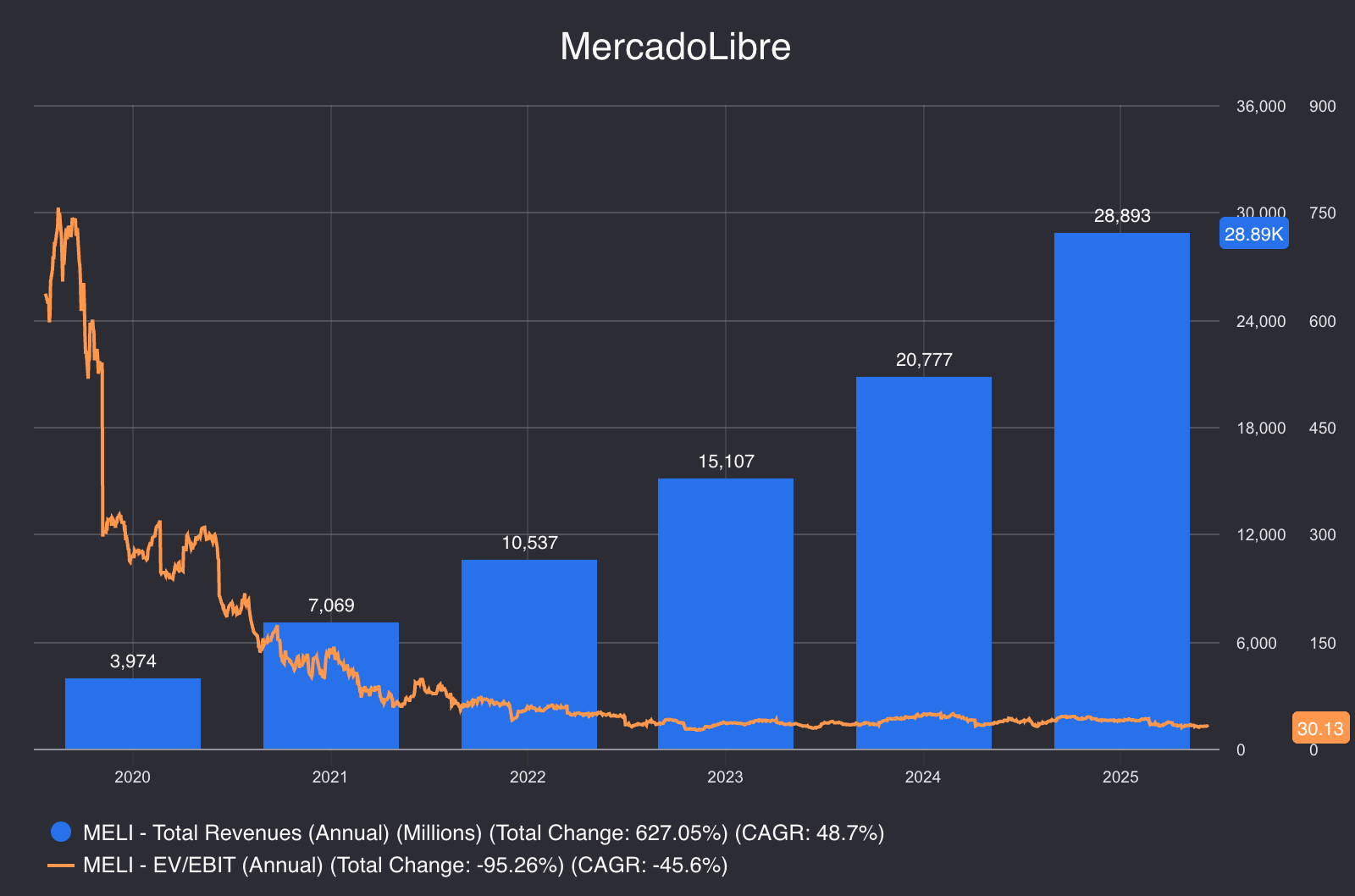 MercadoLibre (MELI) is another giant trading at its lowest valuation ever.