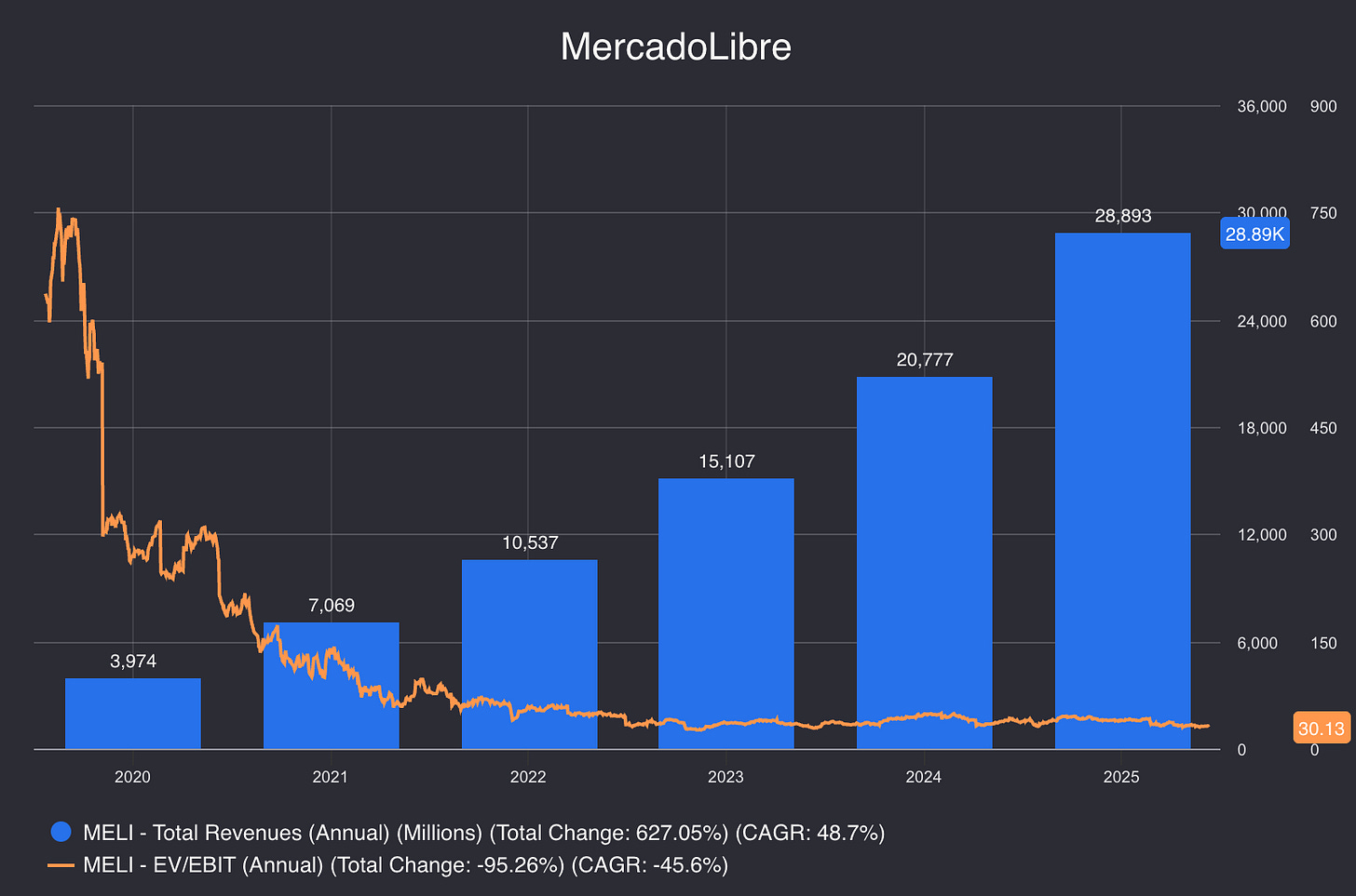 I believe Meli is currently one of the most attractive dominant companies in the market, and it looks like the current valuation ignores all the optionality.