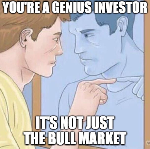 This is why, when many people saw their holdings go up just after they bought over the last year, it was largely a peaking bull market, not an investing genius.