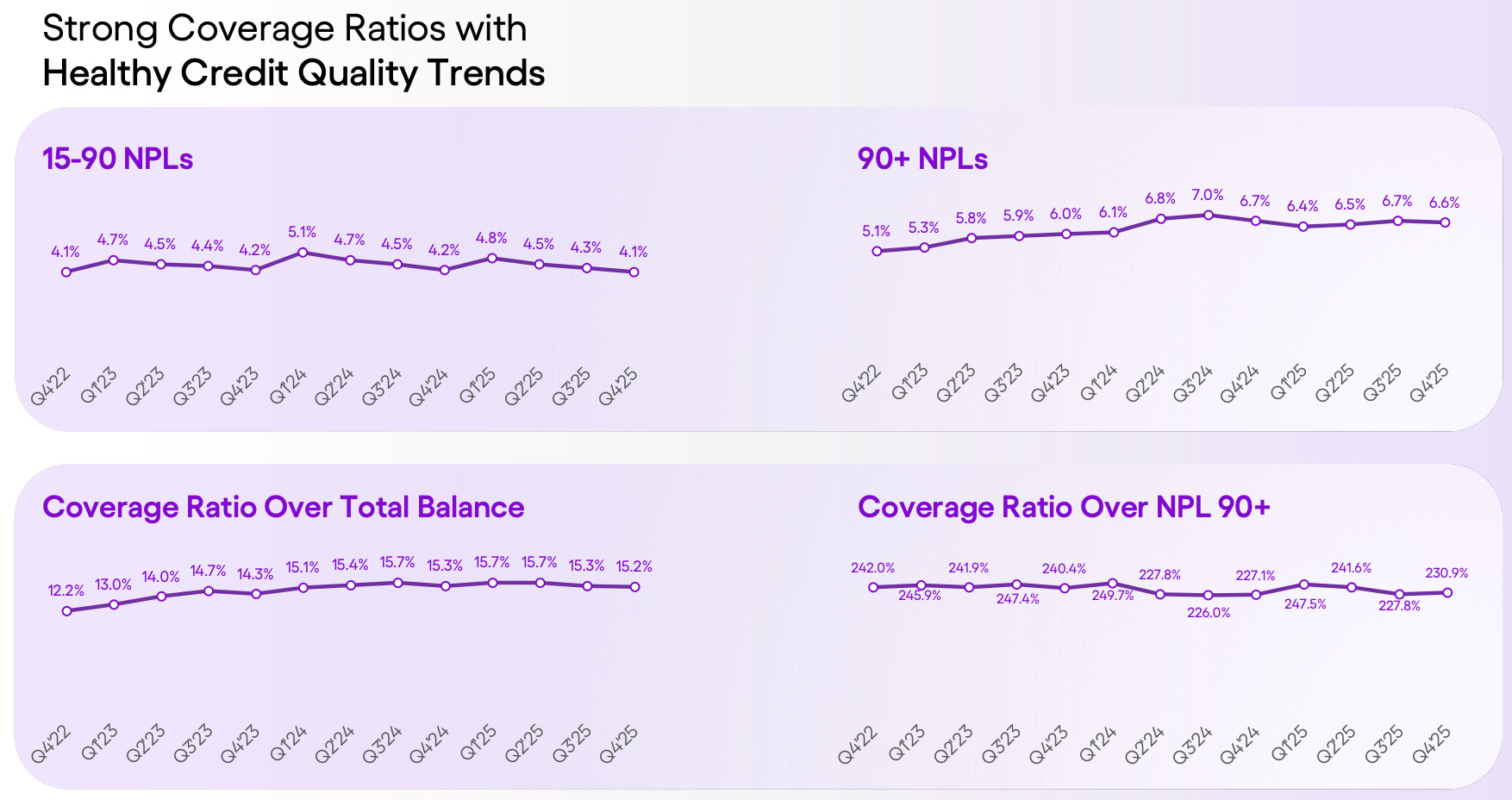 While they kept growing fast, their non-performing loans stayed largely stable, and the coverage ratio increased. They are simply the gold standard when it comes to neo-banking.
