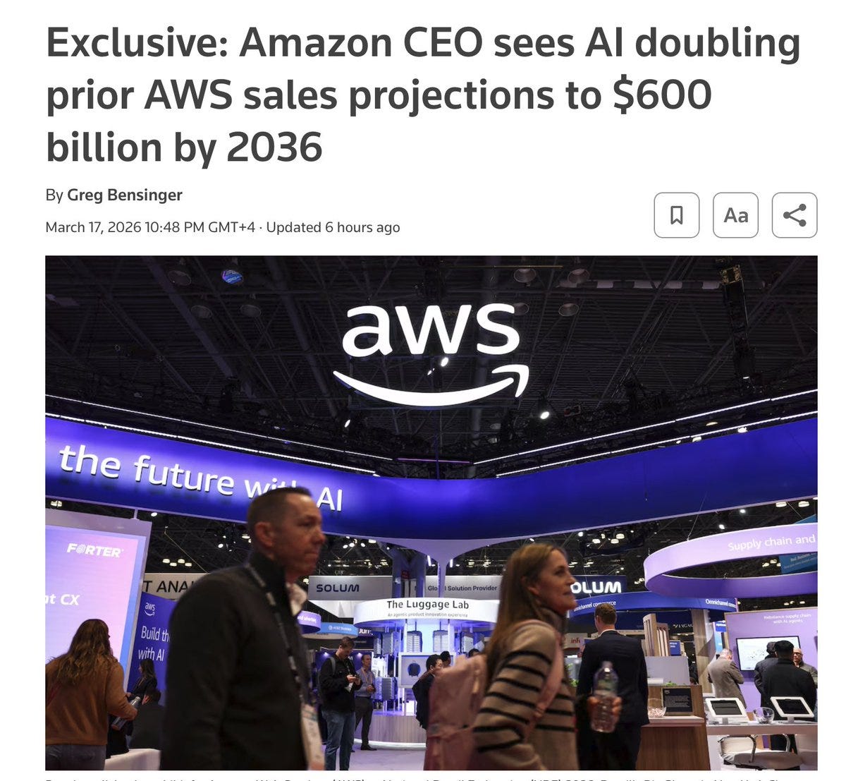 I think this is a very high bar, and I’ll be glad with anything above 25%. However, it’s not totally impossible, as the CEO Andy Jassy reportedly said AWS sales will hit $600 billion by 2036: