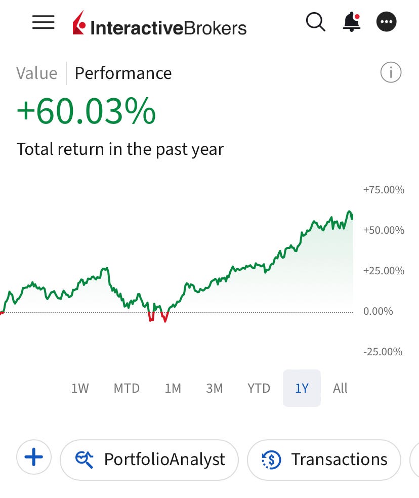 Portfolio is now up 60% in the last twelve months against 20% of the S&P 500!