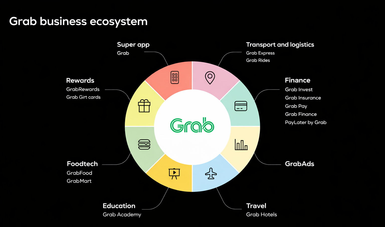 Grab has been deliberately following this strategy to expand its ecosystem. It already has many interconnected businesses across deliveries, mobility, and financial services: