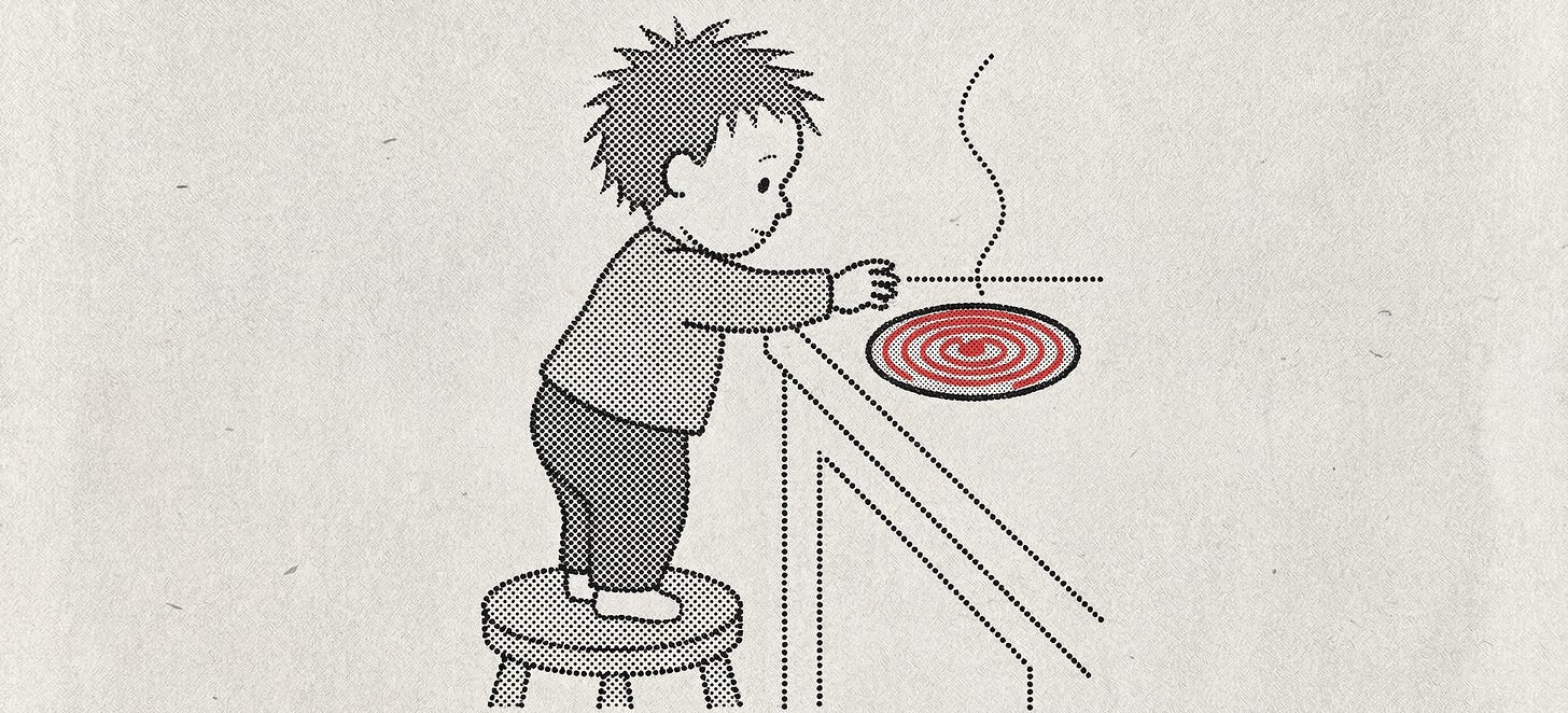 Think about a little child touching a hot stove.