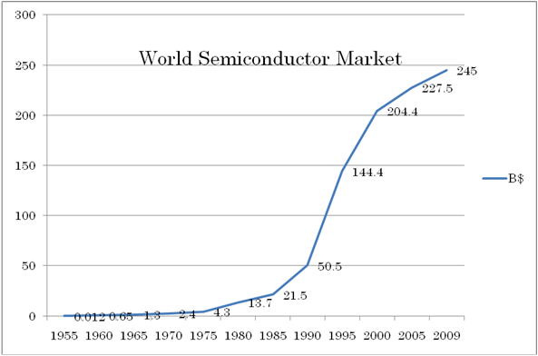 Total semiconductor sales jumped from $2 billion in 1970 to $10 billion in 1979 as chips were now going into everything.