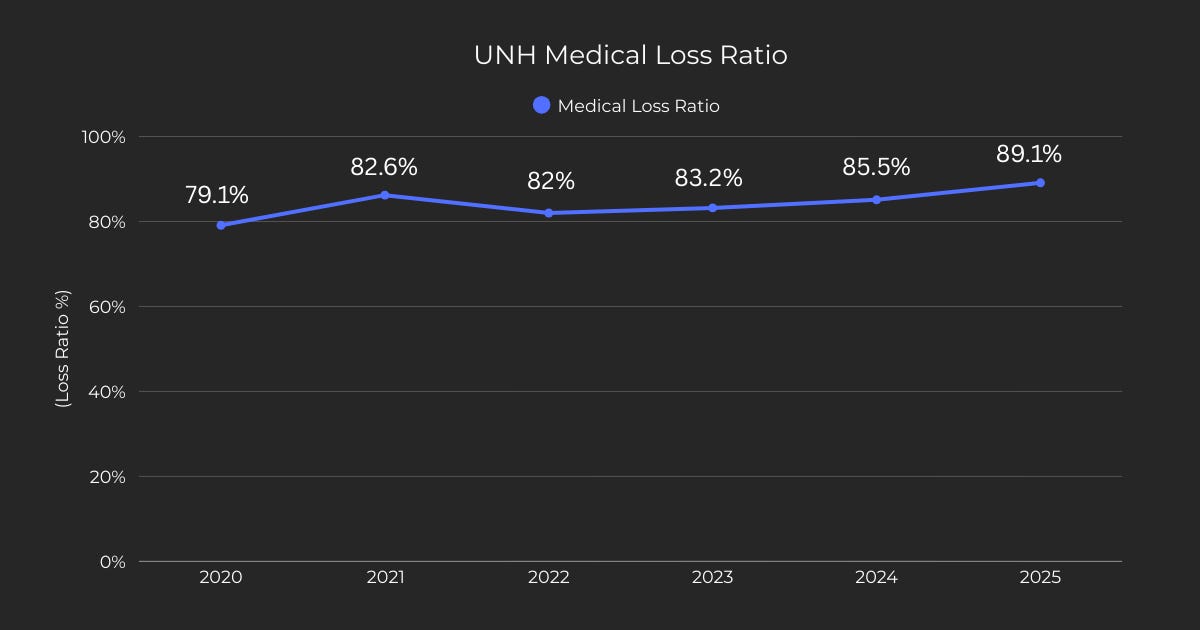 The problem with UnitedHealth is that the aggressive growth in recent years created a bloat in the company. They accepted high-morbidity clients they should have rejected. When this was joined with a higher-than-expected activity rate across other client segments and medical inflation, their medical loss ratio (MLR) skyrocketed: