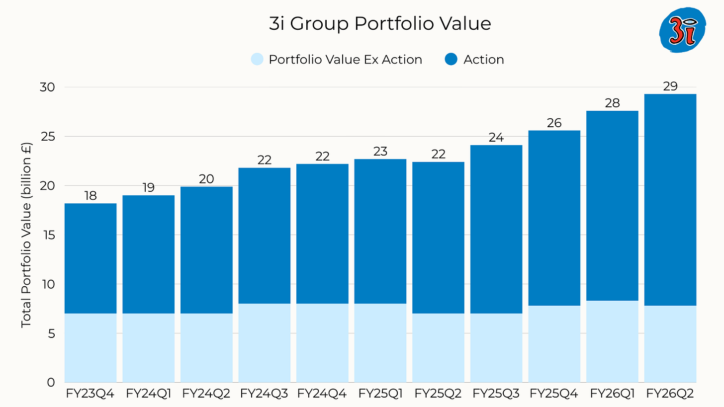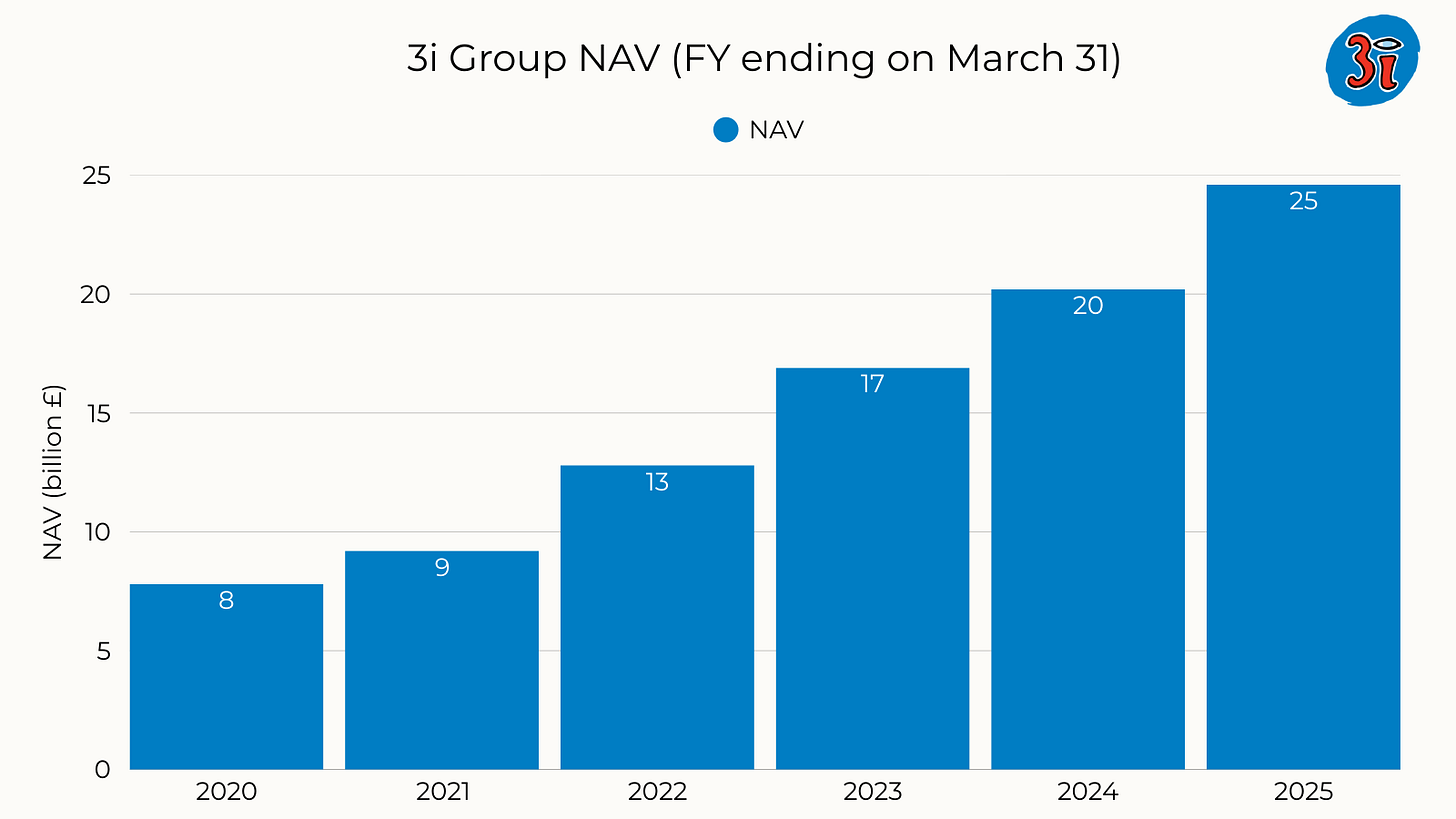 As of September 2025, 3i valued its stake in Action at £21.4 billion. Even if we assume that the remaining portfolio is valued fairly at £7.9 billion, we get a £30.9 billion NAV.