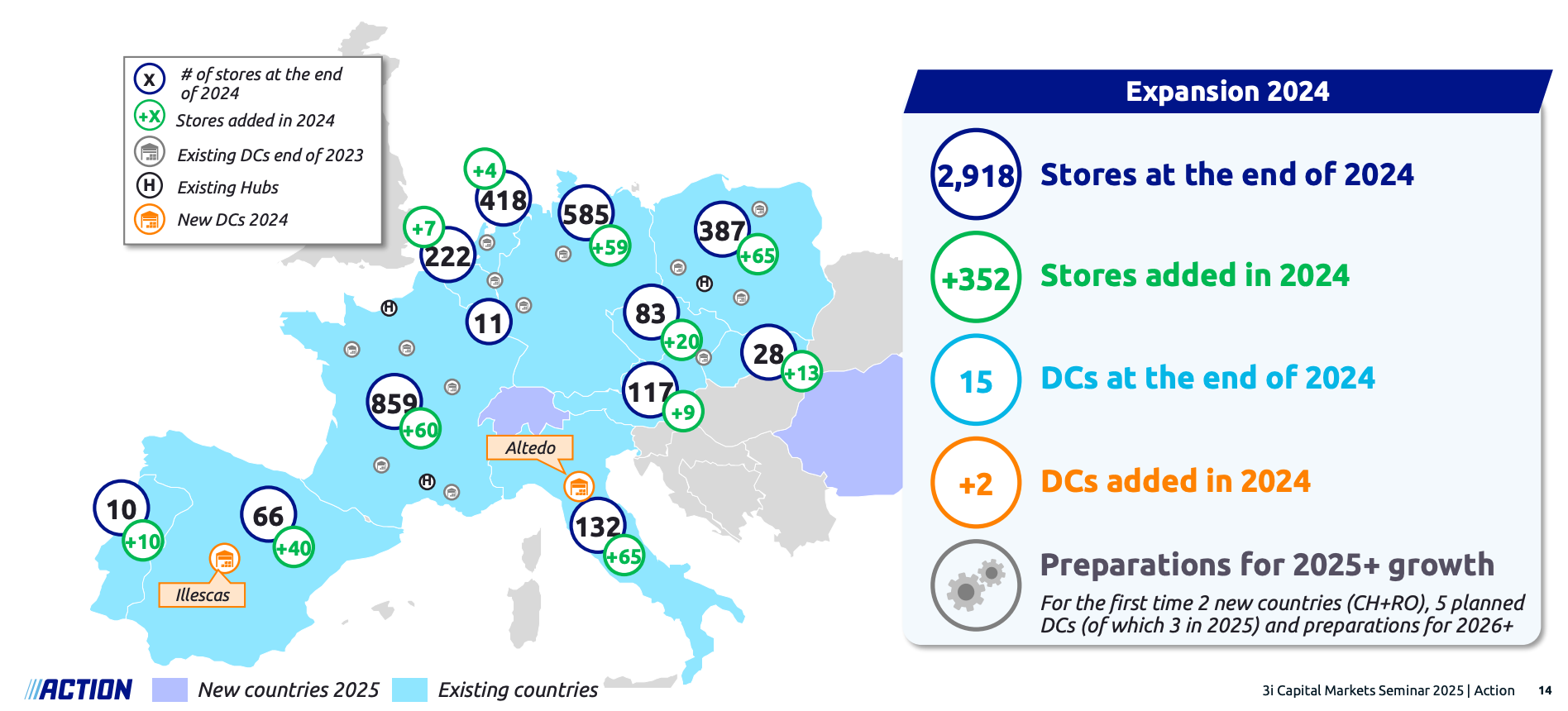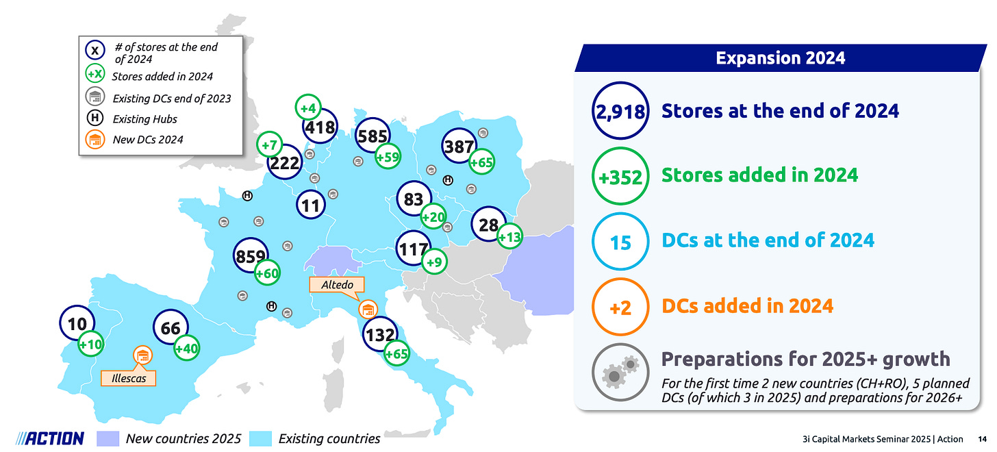 Action currently has around 3,000 stores across Europe, and the management says the whitespace potential is around 4,850. This means that it still has a long runway for growth ahead.
