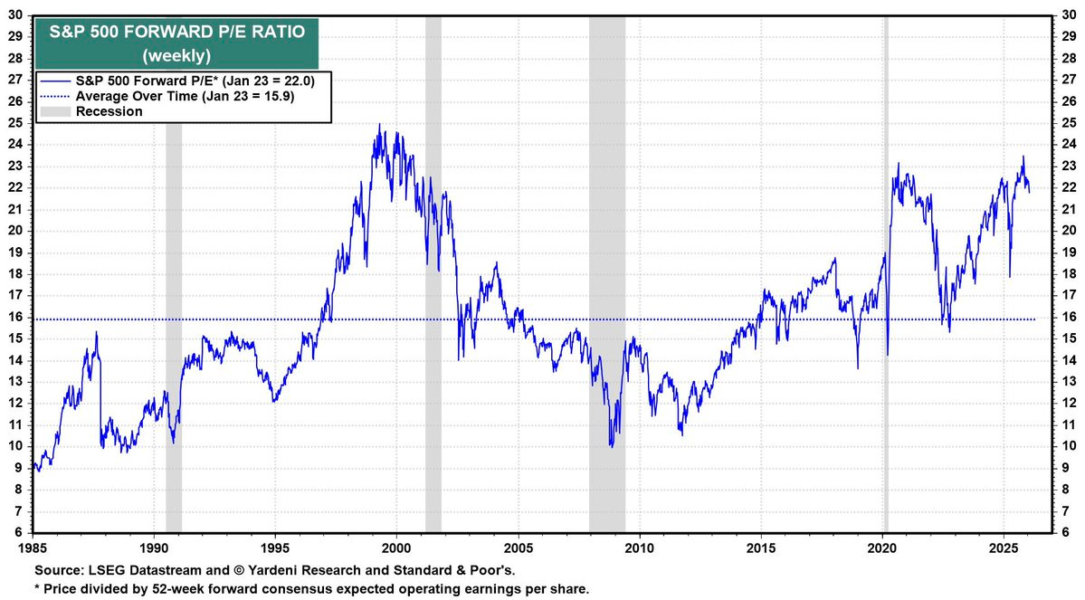 S&P 500 started 2025 at around 22x earnings, and it was trading around the same multiple earlier this week: