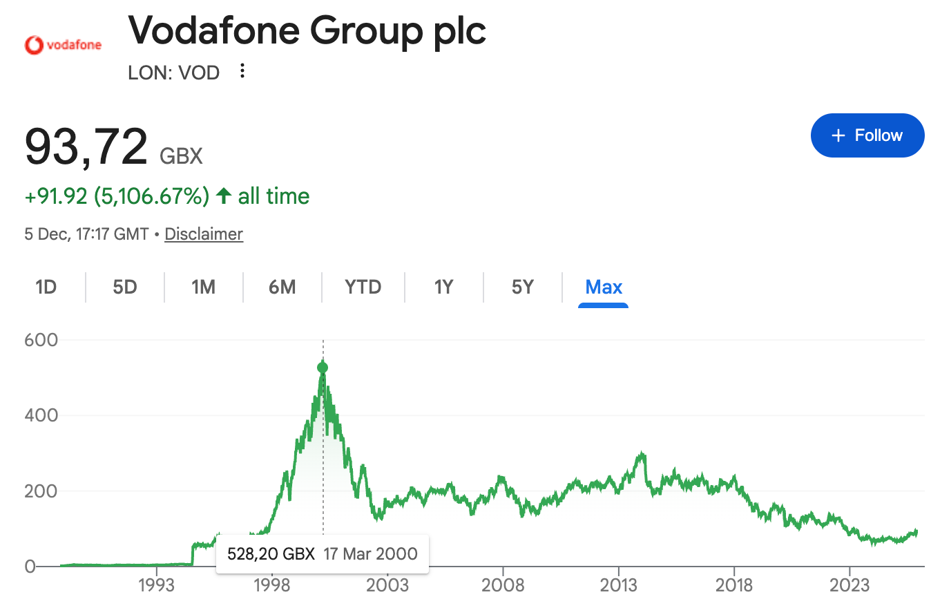 Everybody remembers Cisco, but it has reclaimed its dotcom bubble highs; Vodafone, on the other hand, is still far away. The TMT bubble was immense.