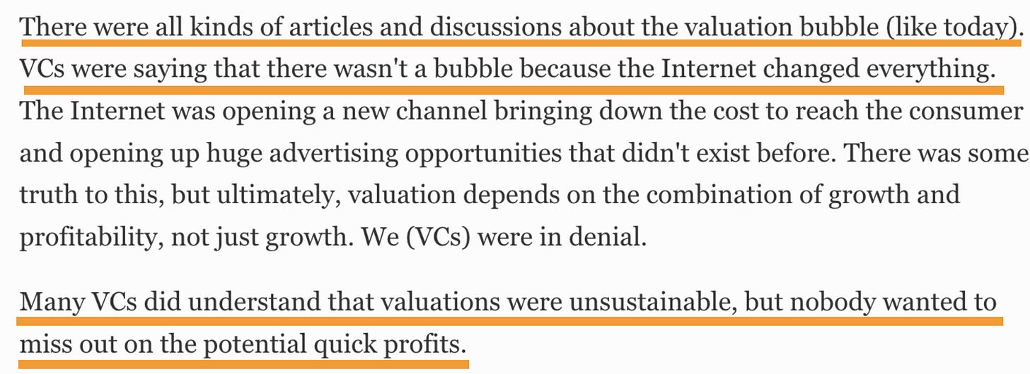 And just like that, we have too much money invested at valuations that are too high and in companies without any prospect for long-term value capture. Just like the dotcom bubble.