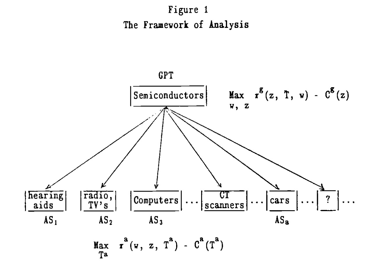 “GPT's are characterized by the existence of innovational complementarities with the application sectors, in the sense that technical advances in the GPT make it more profitable for its users to innovate, and vice versa.”