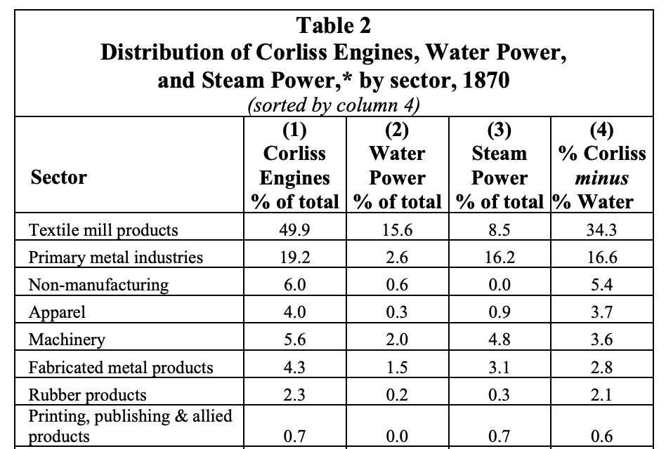 We know that Corliss contributed substantially to this growth, as a rapidly growing industry, textiles accounted for almost 50% of all Corliss engines. Before Corliss, steam hp wasn’t that widespread in textiles due to the limitations explained above.