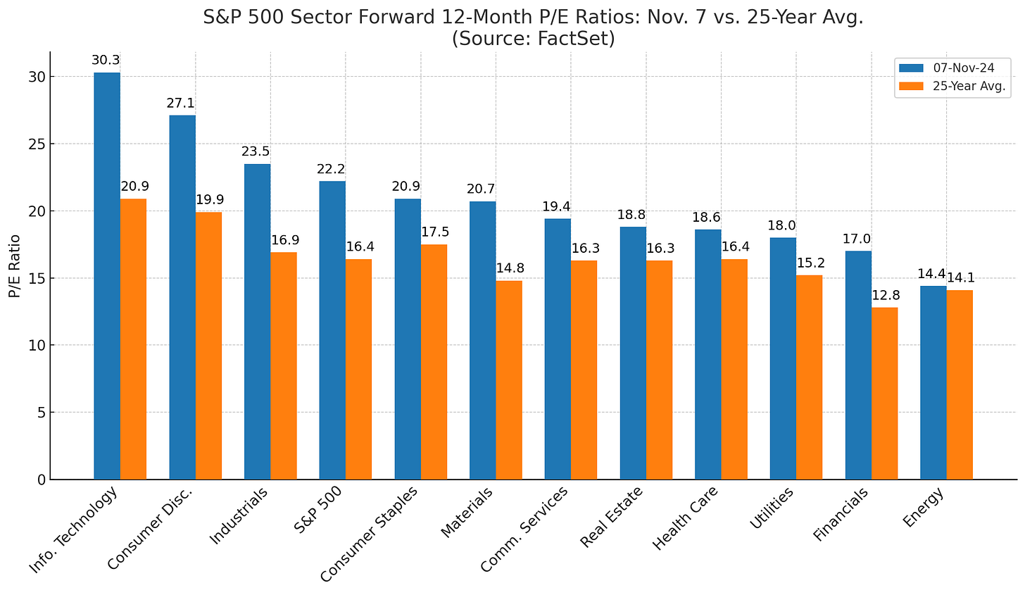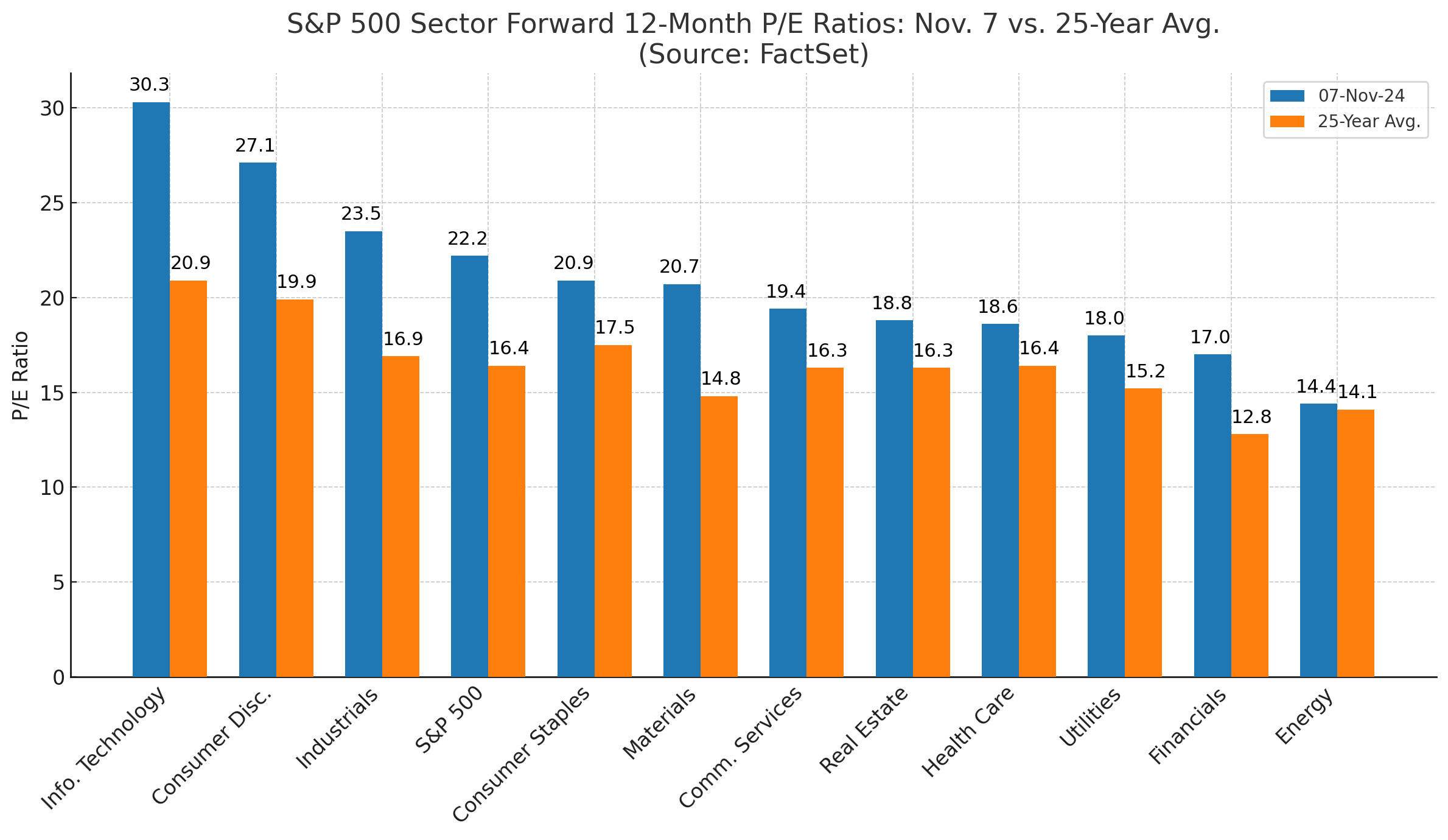At the end of the last year, all S&P 500 sectors were ahead of their 25-year average. Not a single one was behind: