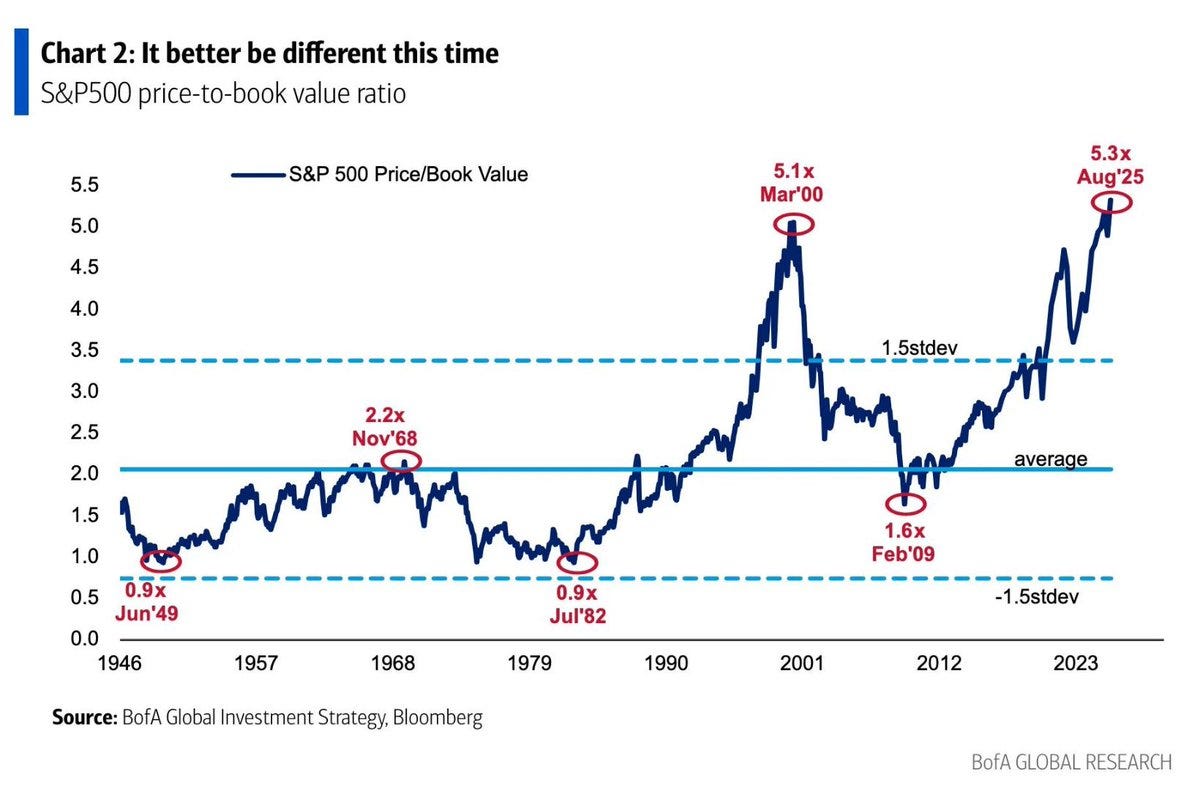Again, we can make the same argument that 5 times book value isnât nearly as bubbly as it was in 2000, because the tech companies are dominating the index now.