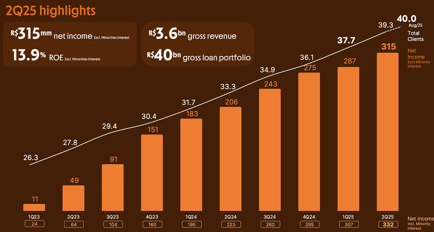 In the same period, their loan portfolio grew from R$25 billion to R$40 billion.