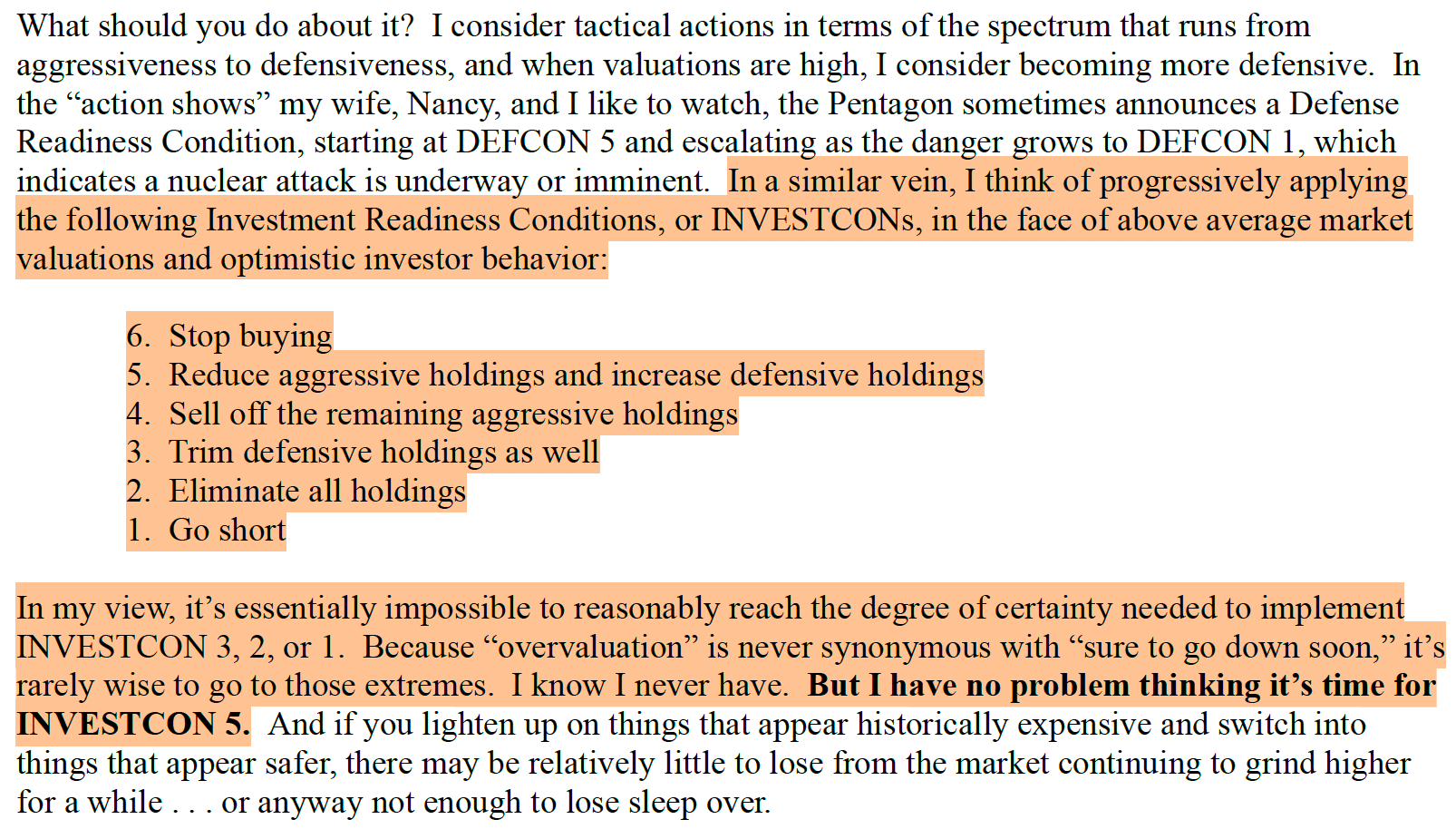 This was obviously expensive, but I have said again and again that it was nowhere near a bubble, and 22 P/E was actually less expensive now than it would have been in 1990.