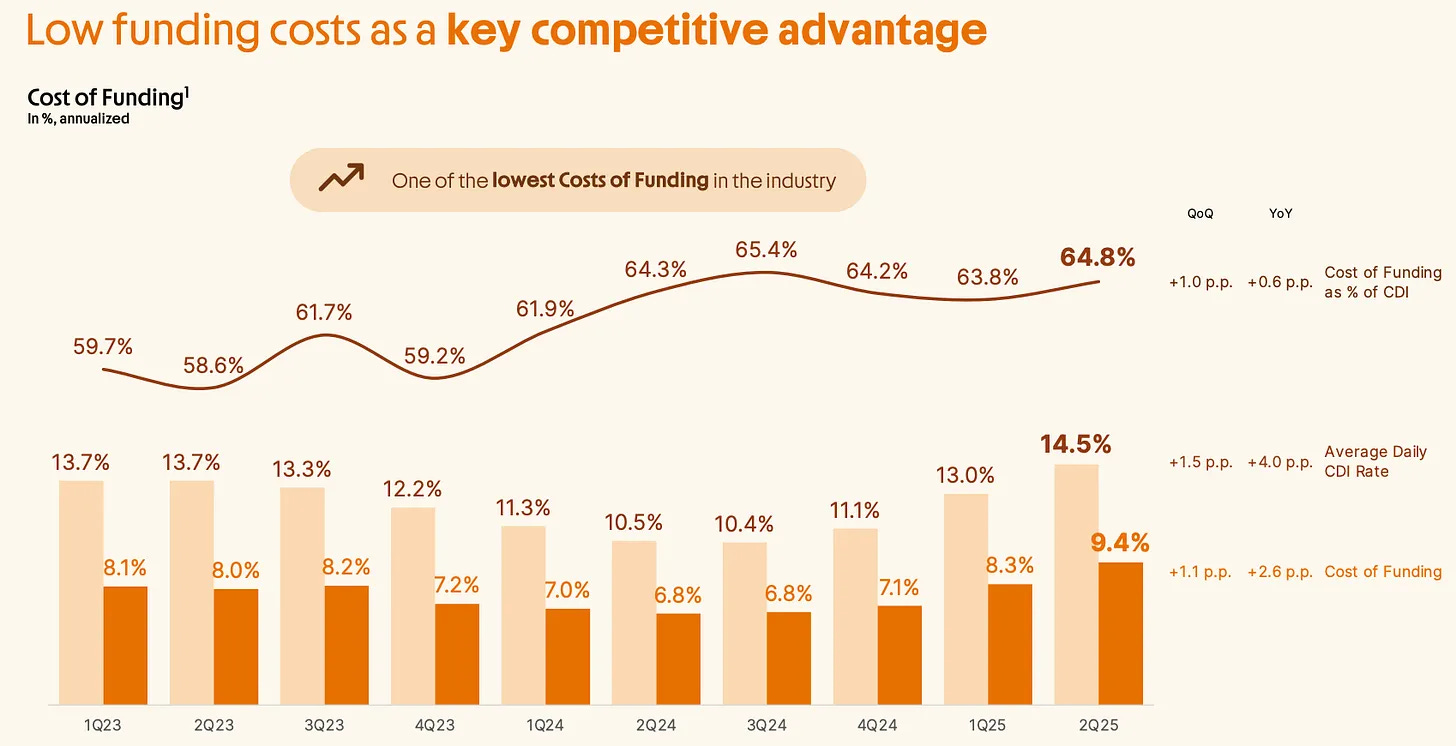 For comparison, NuBankâs cost of funding is currently around 90%.