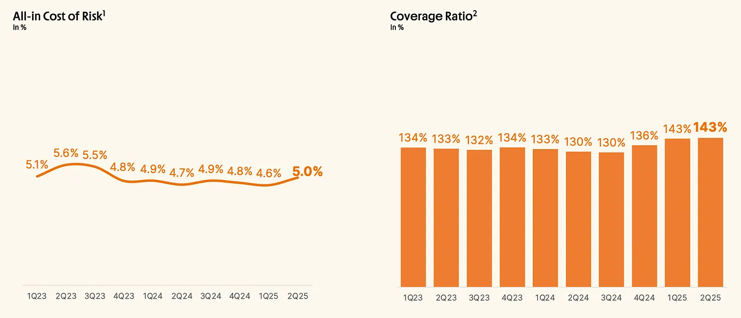 This means that they kept their underwriting standards pretty tight in all this fast growth period. For reference, NuBankâs NPL ratio is well above 6% becasue they havenât been that selective in their underwriting, especially when it comes to credit cards.