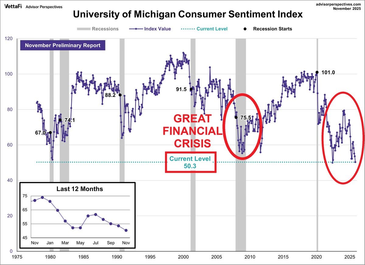 The consumer sentiment has hit its lowest point since the 1980s: